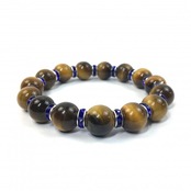 こちらは、12mm玉のタイガーアイを使用した天然石ブレスレットです。石との間にはロンデルを挟み高級感を演出しています。シンプルなデザインですのでどんなコーディネートとも合わせ易いブレスレットです。石大きさは12mm玉です。内周約18cmです。気になる方は是非この機会にどうぞ。