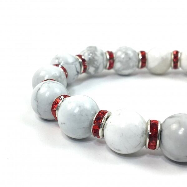 パワーストーン ブレスレット ハウライト 12mm 天然石ブレス (レッド)メンズ・レディース 男性・女性 数珠ブレス 開運 ☆