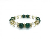 こちらは、緑瑪瑙と水晶を組み合わせたブレスレットです。間にはロンデルを挟み高級感あるデザインに仕上がっています。石大きさは腕にも馴染みやすいように10mm玉で内周約16cm(伸可能)です。数に限りがございますので気になる方はお早めにどうぞ。