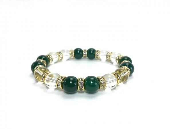 緑瑪瑙&水晶 パワーストーン ブレスレット 天然石 10mm (ゴールド)メンズ・レディース 男性・女性 数珠ブレス 開運 ☆