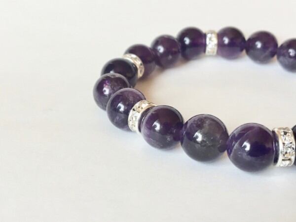 アメジスト パワーストーン ブレスレット 天然石ブレス 10mm (ロンデル:シルバー)