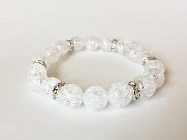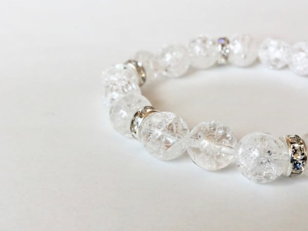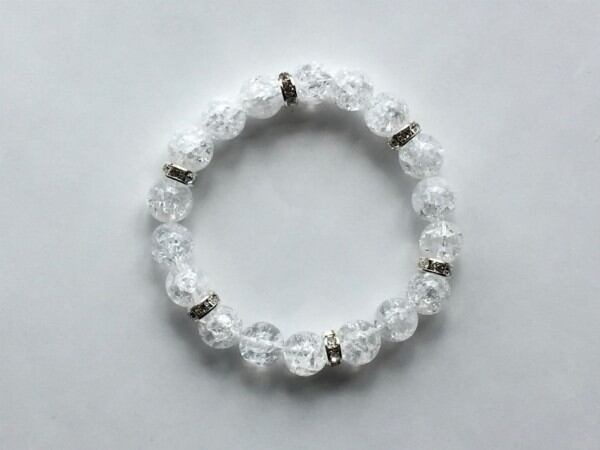 こちらは、10mm玉のクラック水晶を使用した天然石ブレスレットです。間にはロンデルが挟まれ高級感あるデザインに仕上がったブレスレット。シンプルなデザインですのでどんなコーディネートとも合わせ易いブレスレットです。石大きさは腕にも馴染みやすいように10mm玉で内周約17cmです。(オペロンゴムのため伸縮性があります) 数に限りがございますので気になる方はお早めにどうぞ。