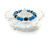 こちらは、10mm玉のターコイズとオニキスを使用したブレスレットです。間にはロンデルが挟まれ高級感あるデザインです。石大きさは腕にも馴染みやすいように10mm玉で内周約18cm(伸可能)です。気になる方は是非この機会にどうぞ。