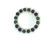 こちらは、グリーンタイガーアイとオニキスを組み合わせたブレスレットです。間にはロンデルを挟み高級感あるデザインに仕上がっています。石大きさは腕にも馴染みやすいように10mm玉で内周約16cm(伸可能)です。数に限りがございますので気になる方はお早めにどうぞ。