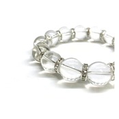 こちらは、14mm玉の水晶を使用した天然石ブレスレットです。シンプルなデザインですのでどんなコーディネートとも合わせ易いブレスレットです。石との間にはロンデルを挟み高級感を演出しています。石大きさはインパクトを与えてくれる大きさの14mm玉を使用しています。内周約17cmです。数に限りがございますので気になる方はお早めにどうぞ。