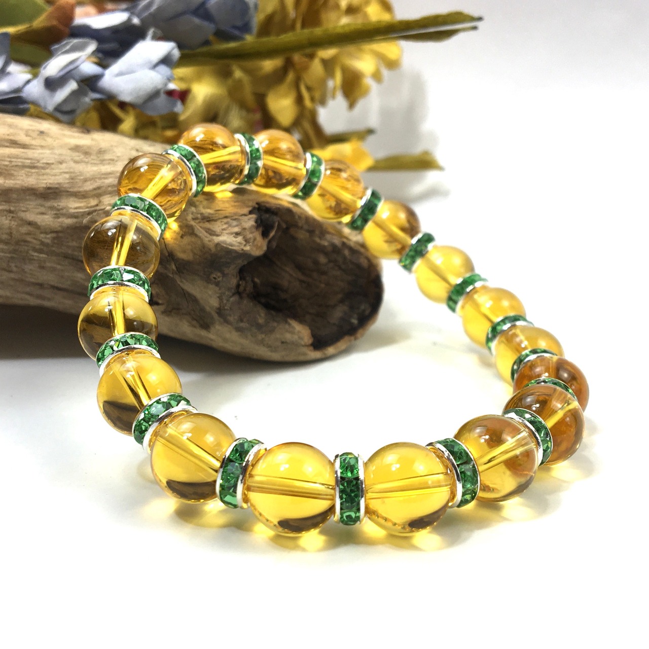 シトリン パワーストーン ブレスレット 10mm (グリーン)メンズ・レディース 男性・女性 数珠ブレス  開運 ☆