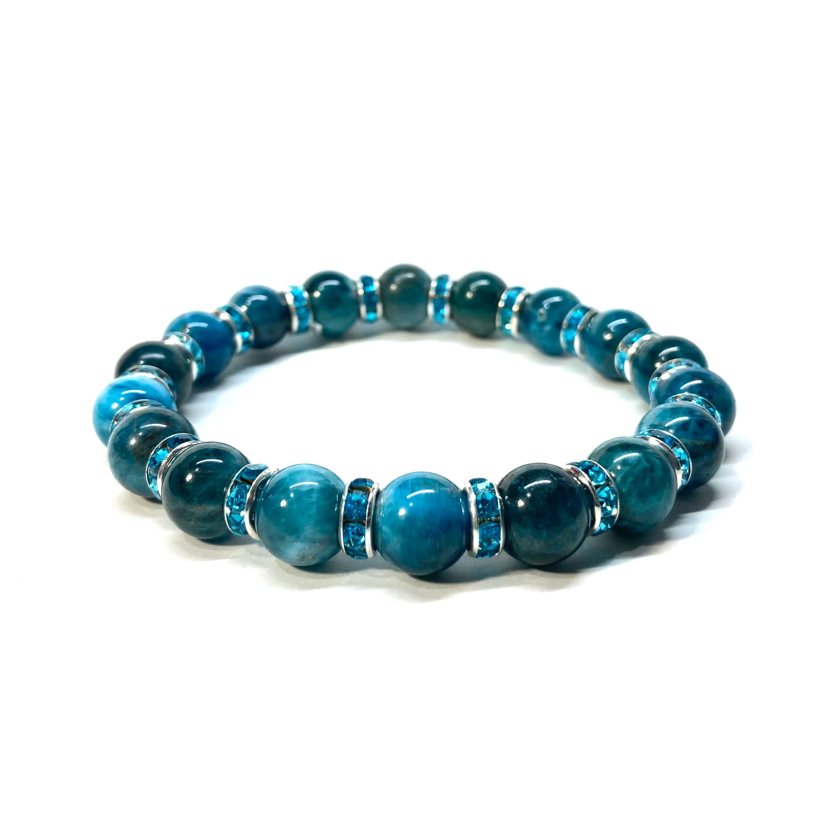 こちらは、アパタイトの10mm玉を使用したパワーストーンブレスレットです。石との間にはロンデルを挟み高級感を演出しております。シンプルなデザインは、シーン問わずどんなコーディネートとも合わせ易いブレスレットです。サイズは種類を選択からお選びください。(内周約14cm?内周約22cmでお選び頂けます)当社の中でも一番人気の実績があるデザインとなっております。気になる方はお早めにどうぞ。