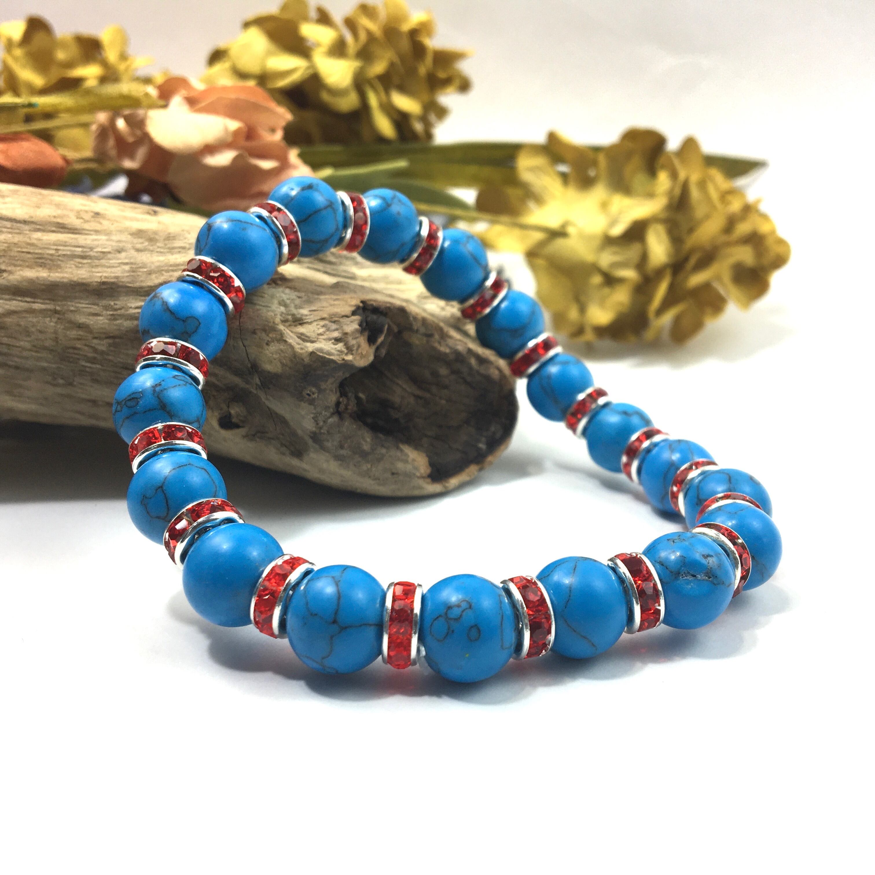 ターコイズ パワーストーン ブレスレット 10mm (レッド)メンズ・レディース 男性・女性 数珠ブレス  開運 ☆