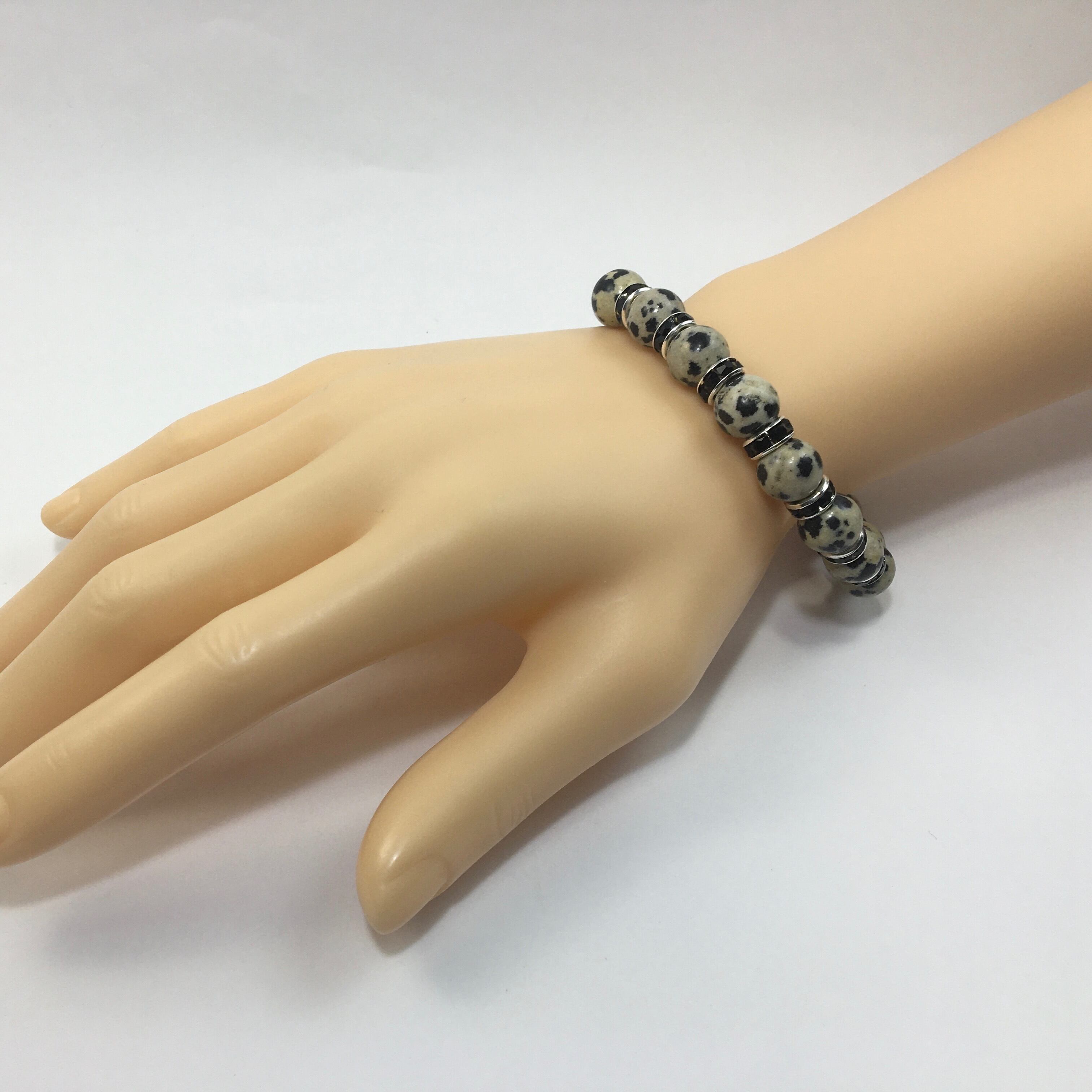 ダルメシアンジャスパー パワーストーン ブレスレット 天然石 10mm (ブラック)メンズ・レディース 男性・女性 数珠ブレス  開運 ☆