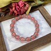 こちらは、チェリークォーツの10mm玉を使用したパワーストーンブレスレットです。石との間にはロンデルを挟み高級感を演出しております。シンプルなデザインは、シーン問わずどんなコーディネートとも合わせ易いブレスレットです。サイズは種類を選択からお選びください。(内周約14cm?内周約22cmでお選び頂けます)当社の中でも一番人気の実績があるデザインとなっております。気になる方はお早めにどうぞ。