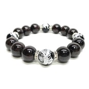 12mm 四神獣銀彫オニキス×ガーネット パワーストーン ブレスレット天然石 運気上昇 開運 ☆ 恋愛運 お守り 青龍 白虎 玄武 朱雀 1月誕生石 (シルバー)メンズ・レディース 男性・女性 数珠ブレス 開運 ☆ | パワーストーン 天然石 Kinari&Co.