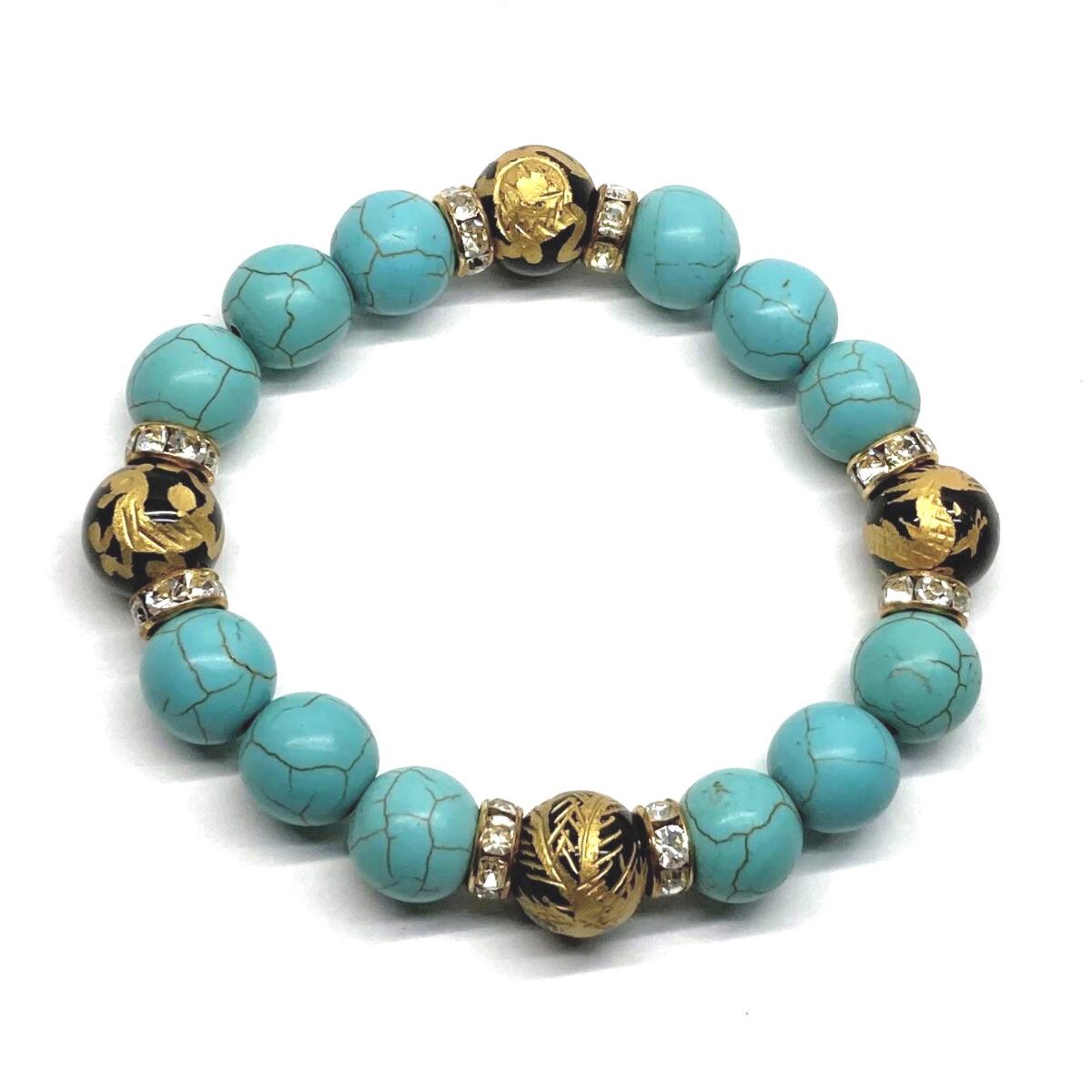 12mm 四神獣金彫オニキス×ターコイズ パワーストーン ブレスレット 運気上昇 開運 金運 健康運 厄除け お守り 青龍 白虎 玄武 朱雀 (ゴールド)メンズ・レディース 男性・女性 数珠ブレス 開運 /2 ☆ | パワーストーン 天然石 Kinari&Co.