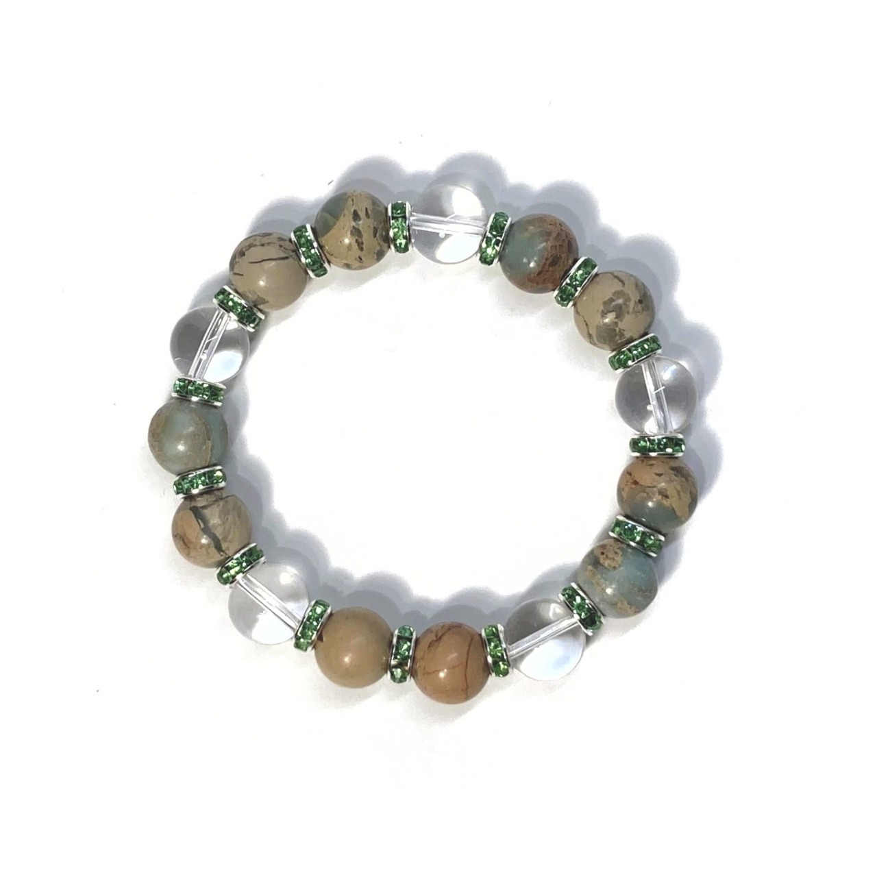 インプレッションストーン&水晶 パワーストーン ブレスレット 12mm(グリーン)メンズ・レディース 男性・女性 数珠ブレス 開運 ☆