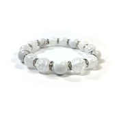こちらは、クラック水晶とハウライトを組み合わせたパワーストーンブレスレットです。間にはロンデルを挟み高級感あるデザインに仕上げております。石大きさは12mm玉を使用して内周約18cmです。気になる方は是非この機会にどうぞ。