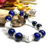 ブルータイガーアイ&ハウライト パワーストーン ブレスレット 12mm (シルバー)メンズ・レディース 男性・女性 数珠ブレス 開運 ☆