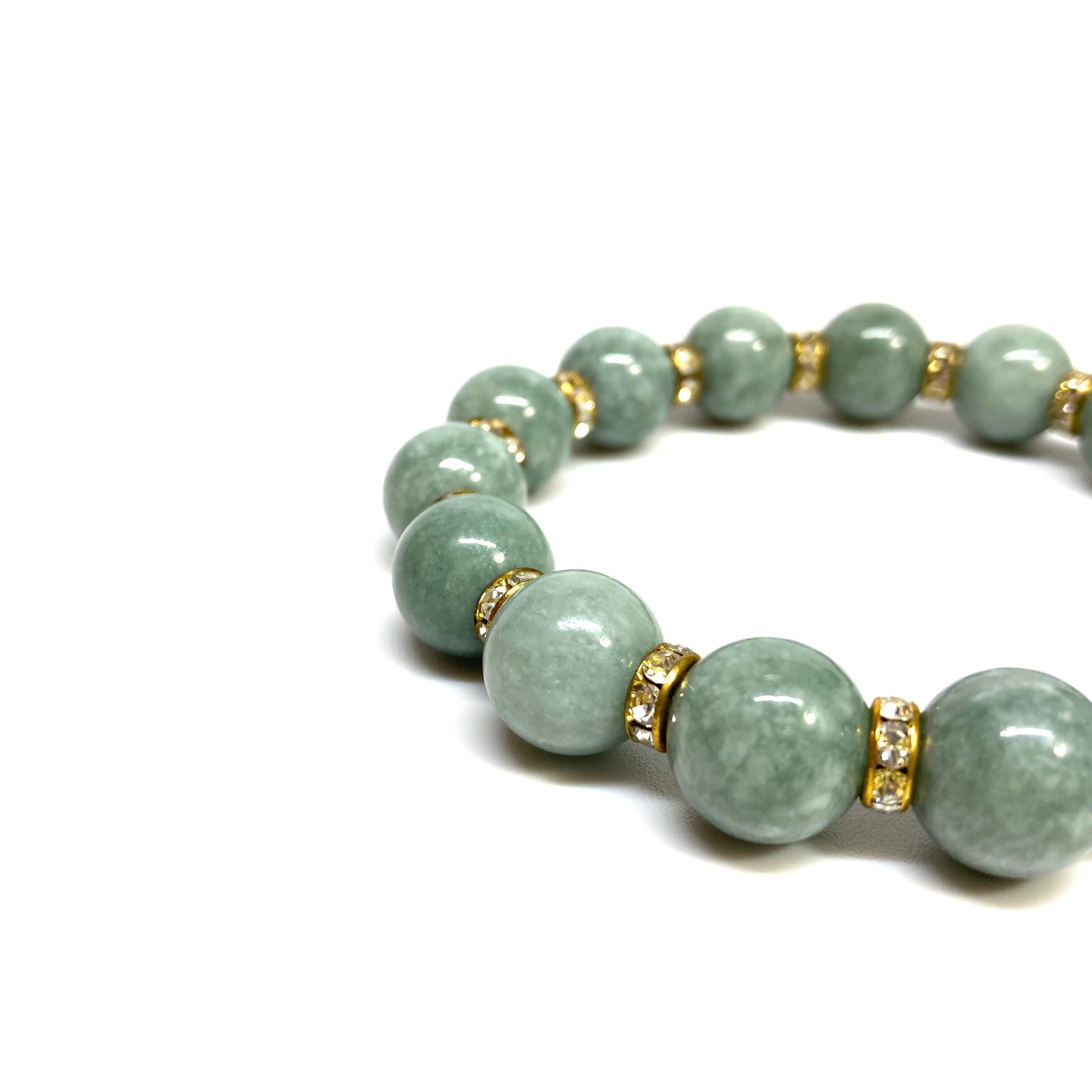 ビルマ翡翠 パワーストーン ブレスレット 12mm (ゴールド) 天然石ブレス 数珠ブレス メンズ・レディース 男性 女性 幸運 開運 浄化 ☆