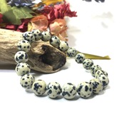 こちらは、ダルメシアンジャスパーの10mm玉を使用したパワーストーンブレスレットです。シンプルなデザインは、シーン問わずどんなコーディネートとも合わせ易いブレスレットです。サイズは種類を選択からお選びください。(内周約14cm?内周約22cmでお選び頂けます)。気になる方はお早めにどうぞ。
