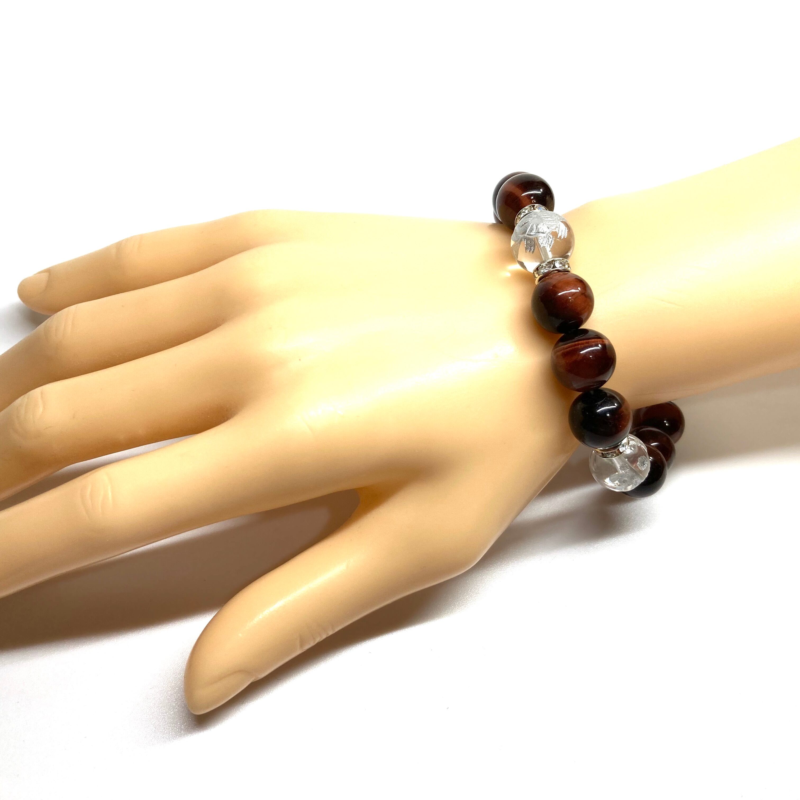 12mm 四神獣銀彫水晶×レッドタイガーアイ パワーストーン ブレスレット天然石 開運 ☆ 金運 ギャンブル運 お守り 青龍 白虎 玄武 朱雀 (シルバー)メンズ・レディース 男性・女性 数珠ブレス 開運 ☆ | パワーストーン 天然石 Kinari&Co.