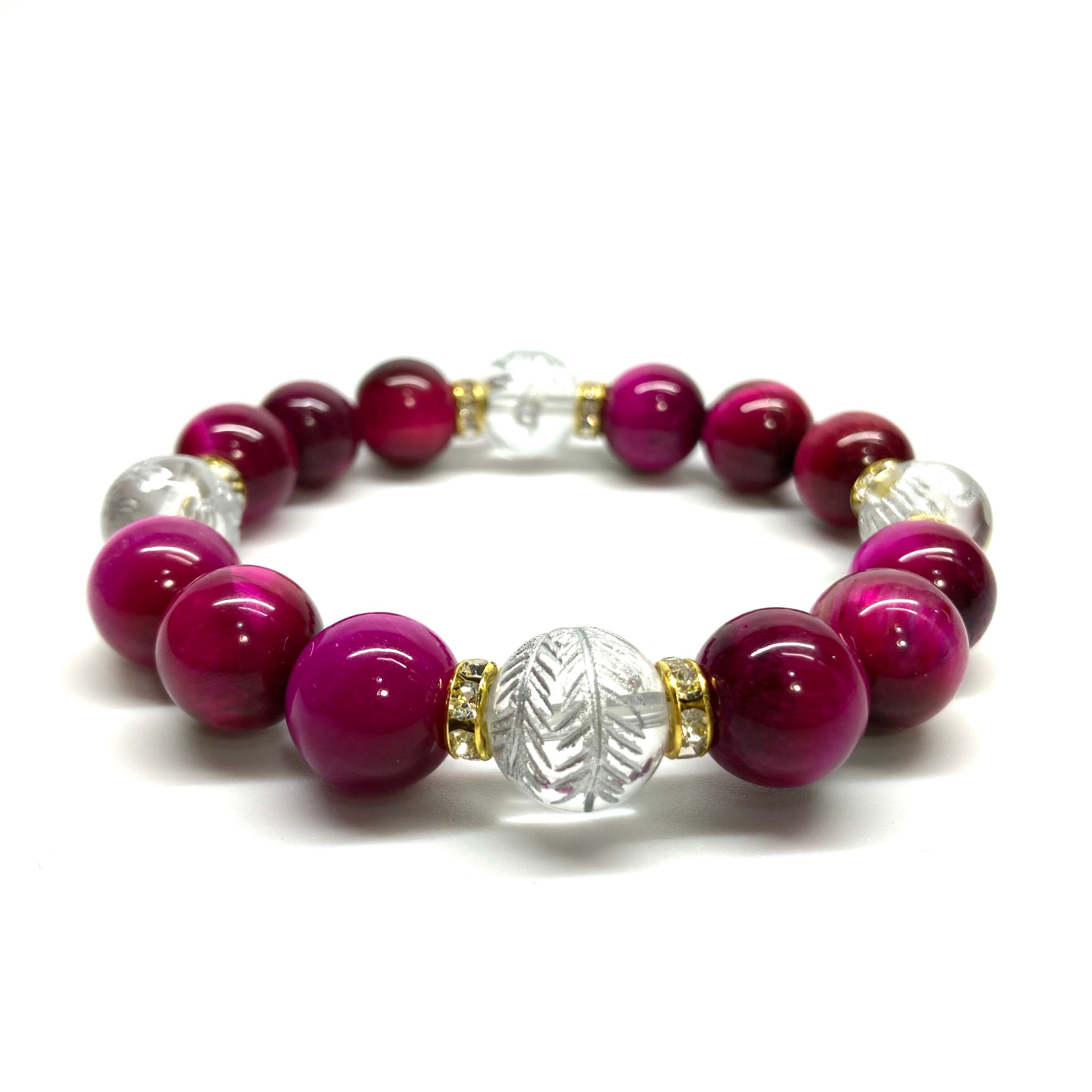 12mm 四神獣銀彫水晶×ピンクタイガーアイ パワーストーン ブレスレット天然石 運気上昇 開運 ☆ 恋愛運 お守り 青龍 白虎 玄武 朱雀 (ゴールド)メンズ・レディース 男性・女性 数珠ブレス 開運 ☆ | パワーストーン 天然石 Kinari&Co.