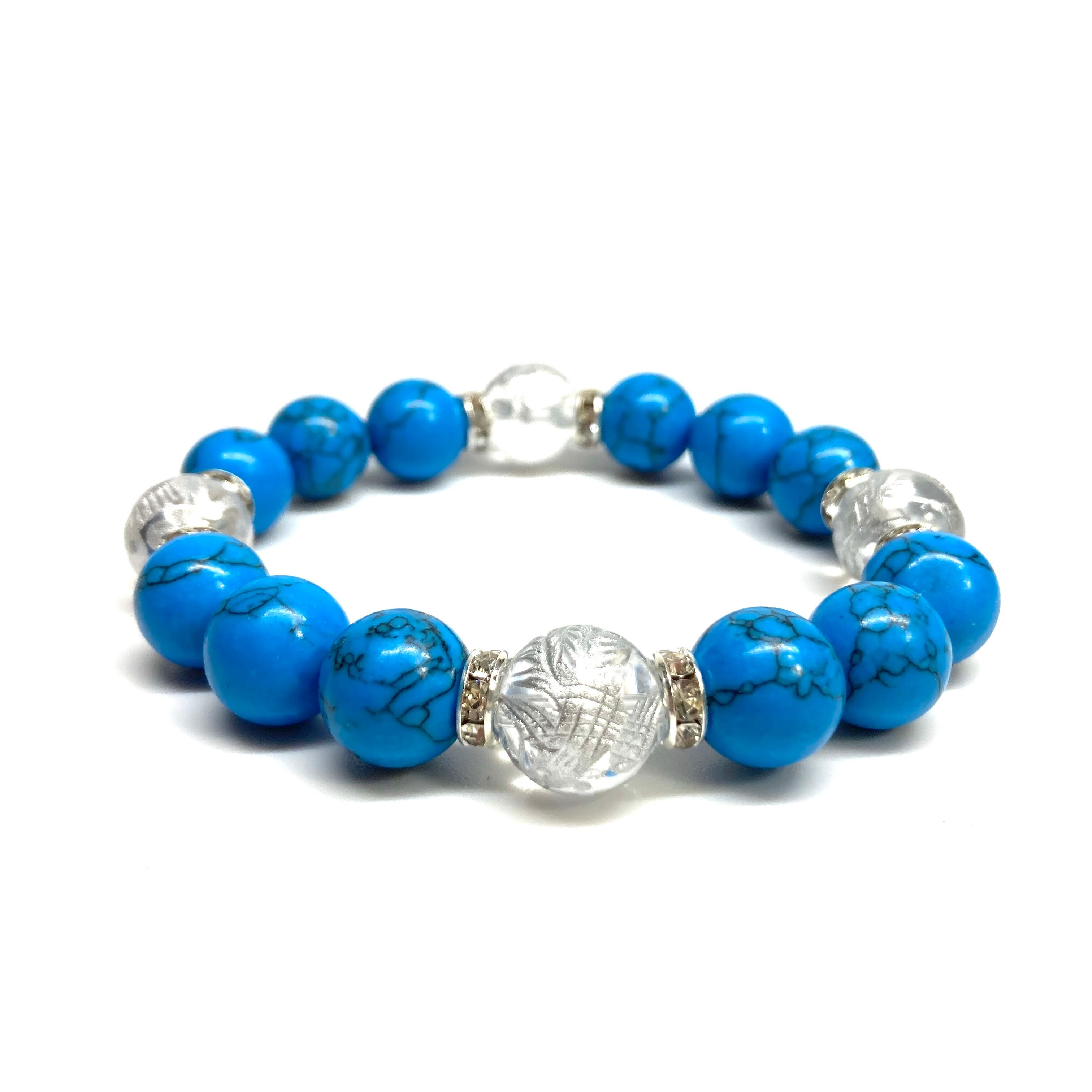 ご覧頂いているブレスレットは、四神獣銀彫水晶とターコイズを組み合わせたブレスレット。守り神である四神とパワーストーンの組み合わせで運気の流れを引き寄せる強運ブレスレットです。シンプルなデザインで男女問わず、年齢問わずご使用頂けるデザインなっております。シンプルなデザインは日常のアクセントとして、仕事やビジネスカジュアル、パーティーや特別なイベントなど様々なシーン活用できます。また、ちょっと贈り物にも最適なブレスレットになっております。四神獣を身につけて厄災から身を守り、多くの運気を呼び込まれてください。