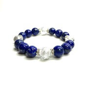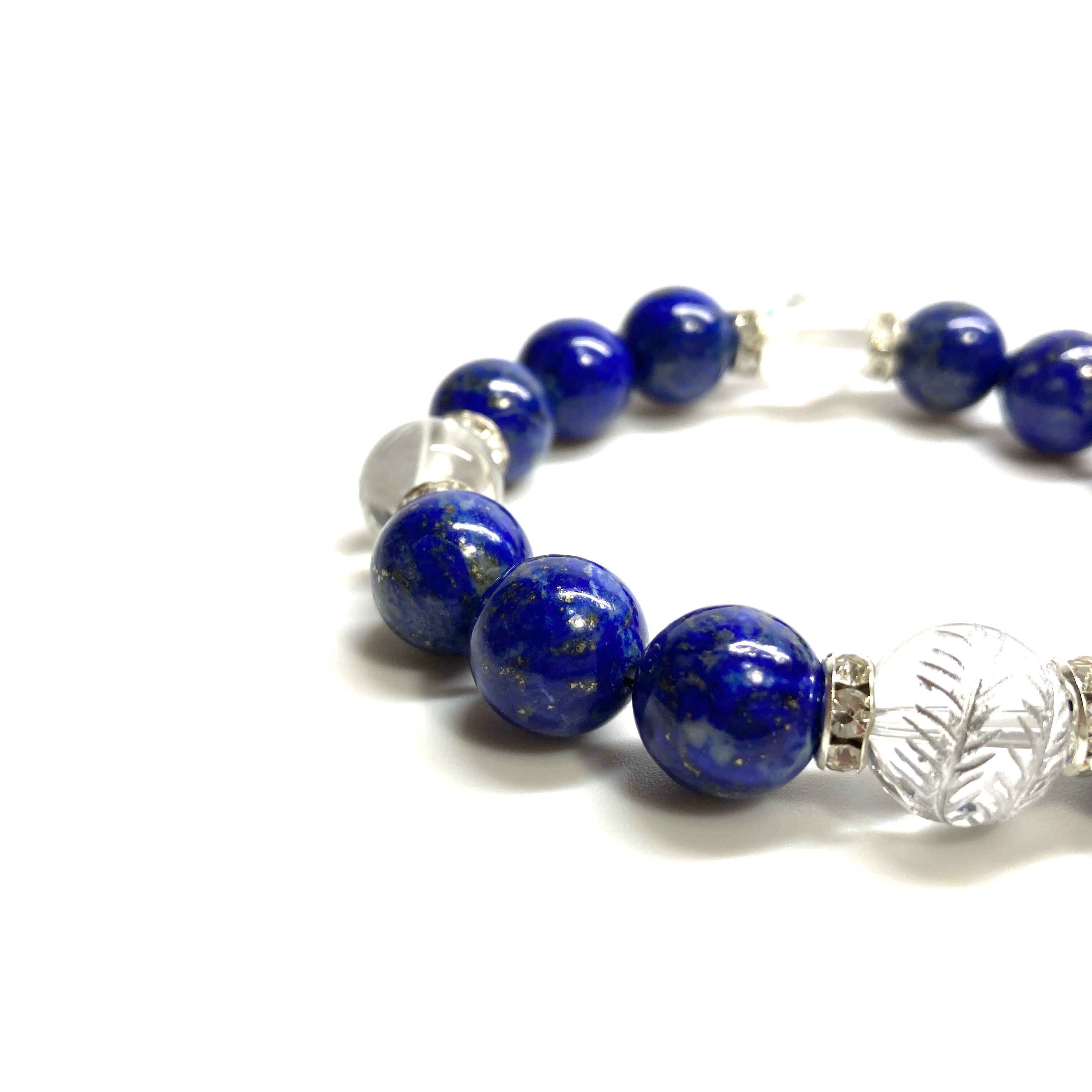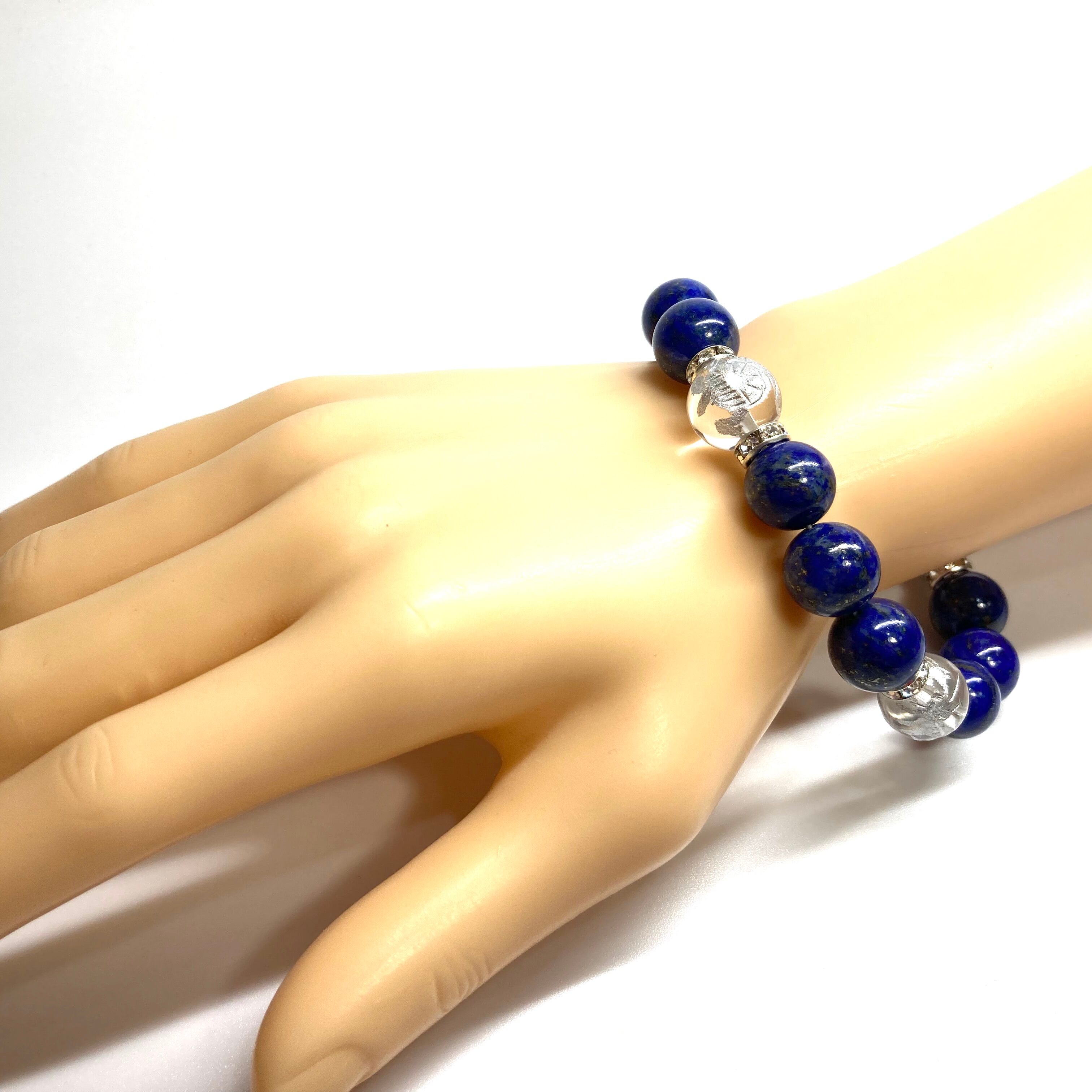 12mm 四神獣銀彫水晶×ラピスラズリ パワーストーン ブレスレット天然石 開運 ☆ 厄払い お守り 青龍 白虎 玄武 朱雀 9月・12月誕生石 (シルバー)メンズ・レディース 男性・女性 数珠ブレス 開運 ☆ | パワーストーン 天然石 Kinari&Co.