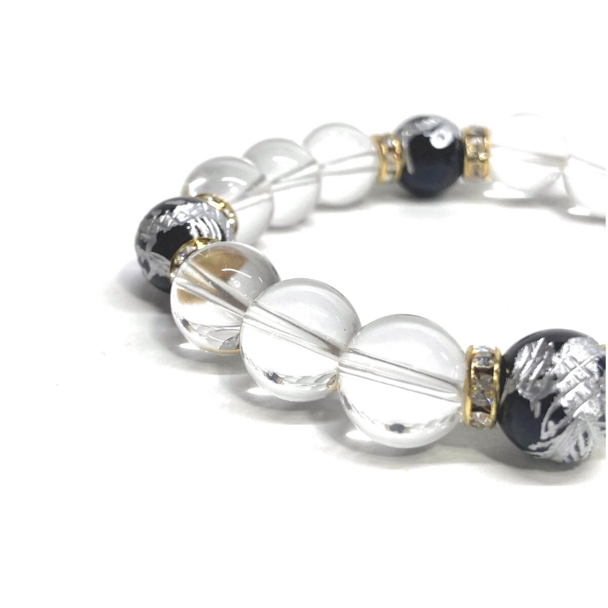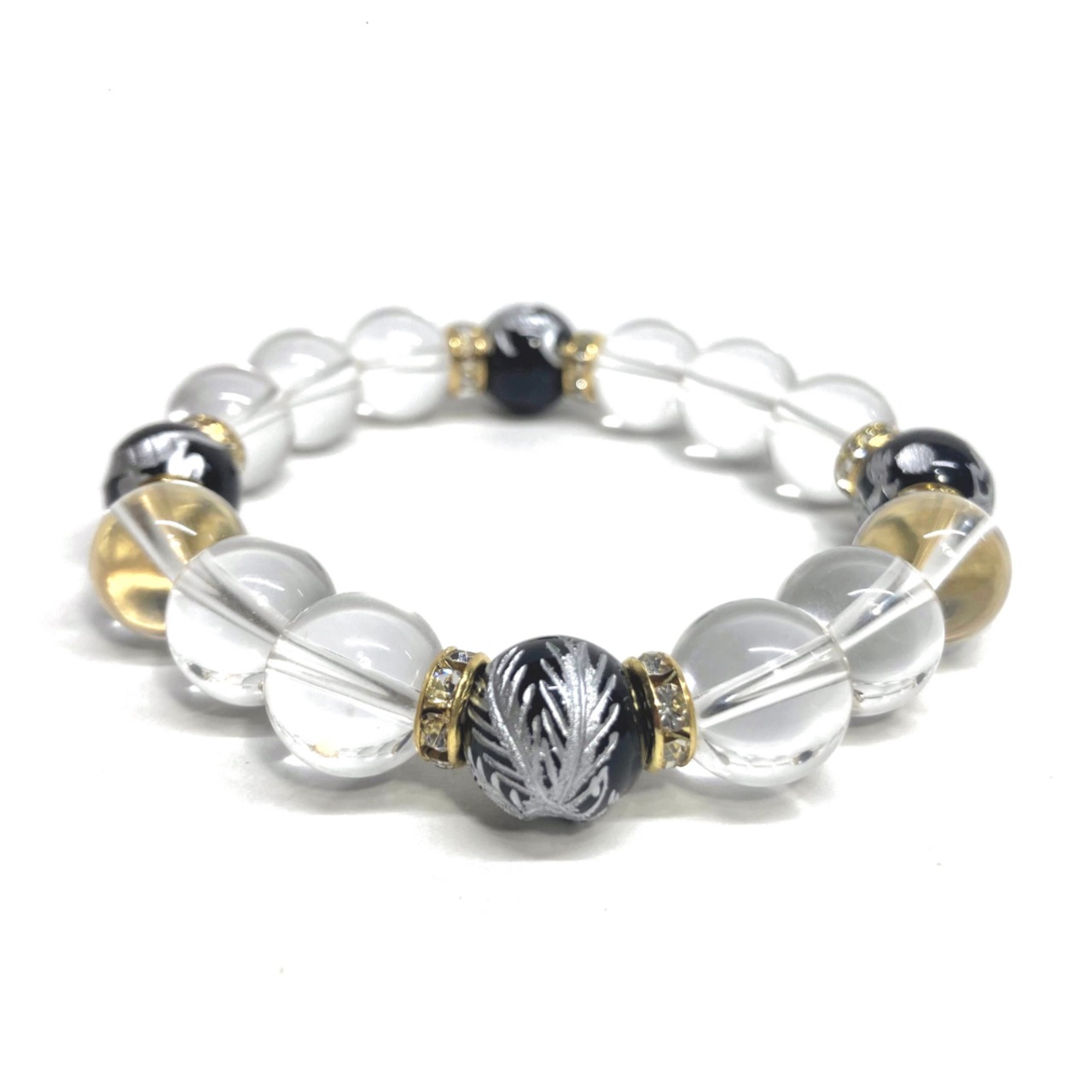 12mm 四神獣銀彫オニキス×水晶 パワーストーン ブレスレット天然石 運気上昇 開運 ☆ 金運 恋愛運 お守り 青龍 白虎 玄武 朱雀 4月誕生石 (ゴールド)メンズ・レディース 男性・女性 数珠ブレス 開運 ☆ | パワーストーン 天然石 Kinari&Co.