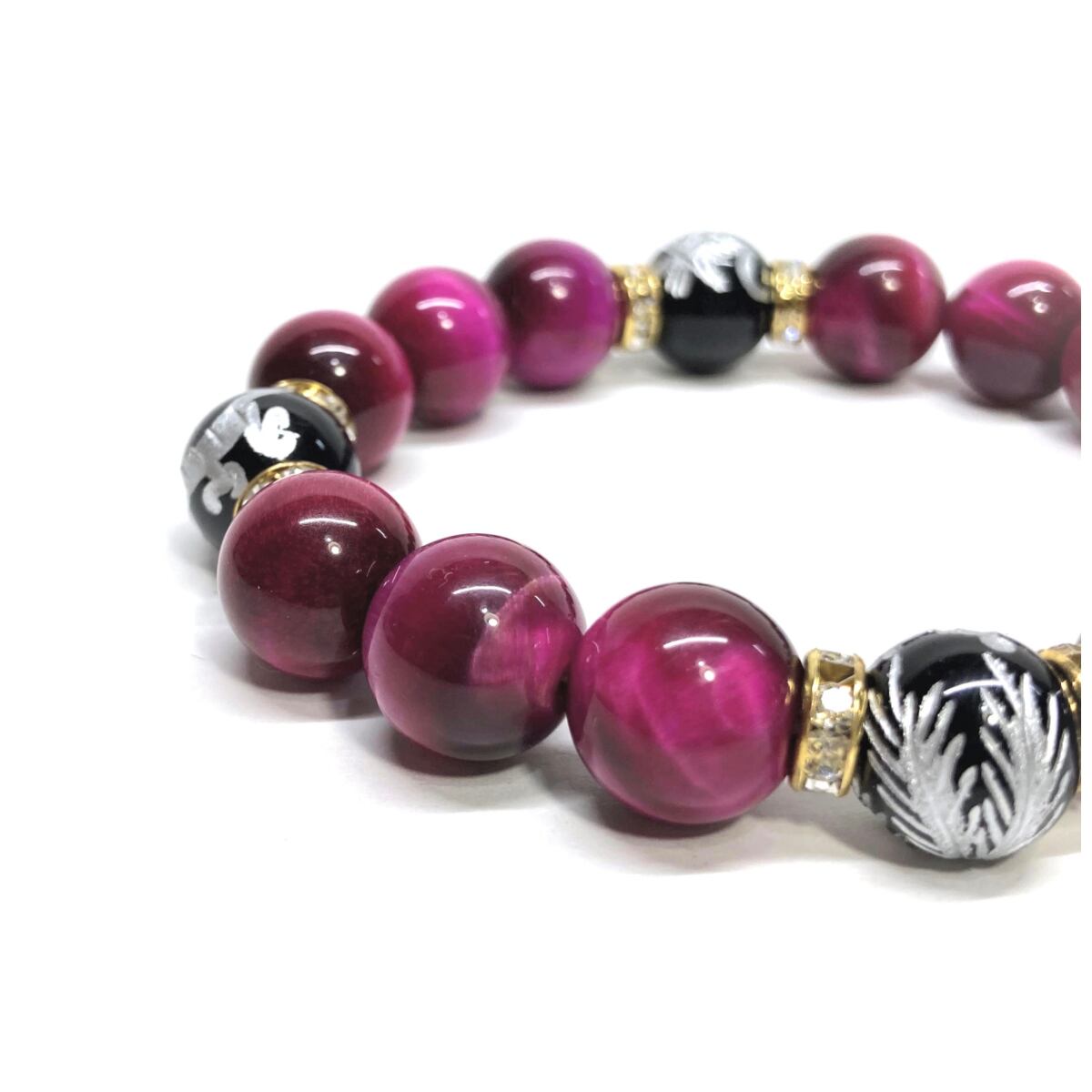ご覧頂いているブレスレットは、四神獣銀彫オニキスとピンクタイガーアイを組み合わせたブレスレット。守り神である四神とパワーストーンの組み合わせで運気の流れを引き寄せる強運ブレスレットです。シンプルなデザインで男女問わず、年齢問わずご使用頂けるデザインなっております。シンプルなデザインは日常のアクセントとして、仕事やビジネスカジュアル、パーティーや特別なイベントなど様々なシーン活用できます。また、ちょっと贈り物にも最適なブレスレットになっております。四神獣を身につけて厄災から身を守り、多くの運気を呼び込まれてください。