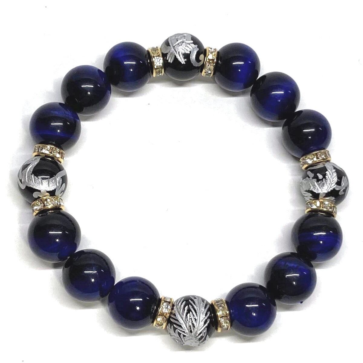 12mm 四神獣銀彫オニキス×ブルータイガーアイ パワーストーン ブレスレット天然石 運気上昇 金運 開運 ☆ お守り 青龍 白虎 玄武 朱雀 (ゴールド)メンズ・レディース 男性・女性 数珠ブレス 開運 ☆ | パワーストーン 天然石 Kinari&Co.