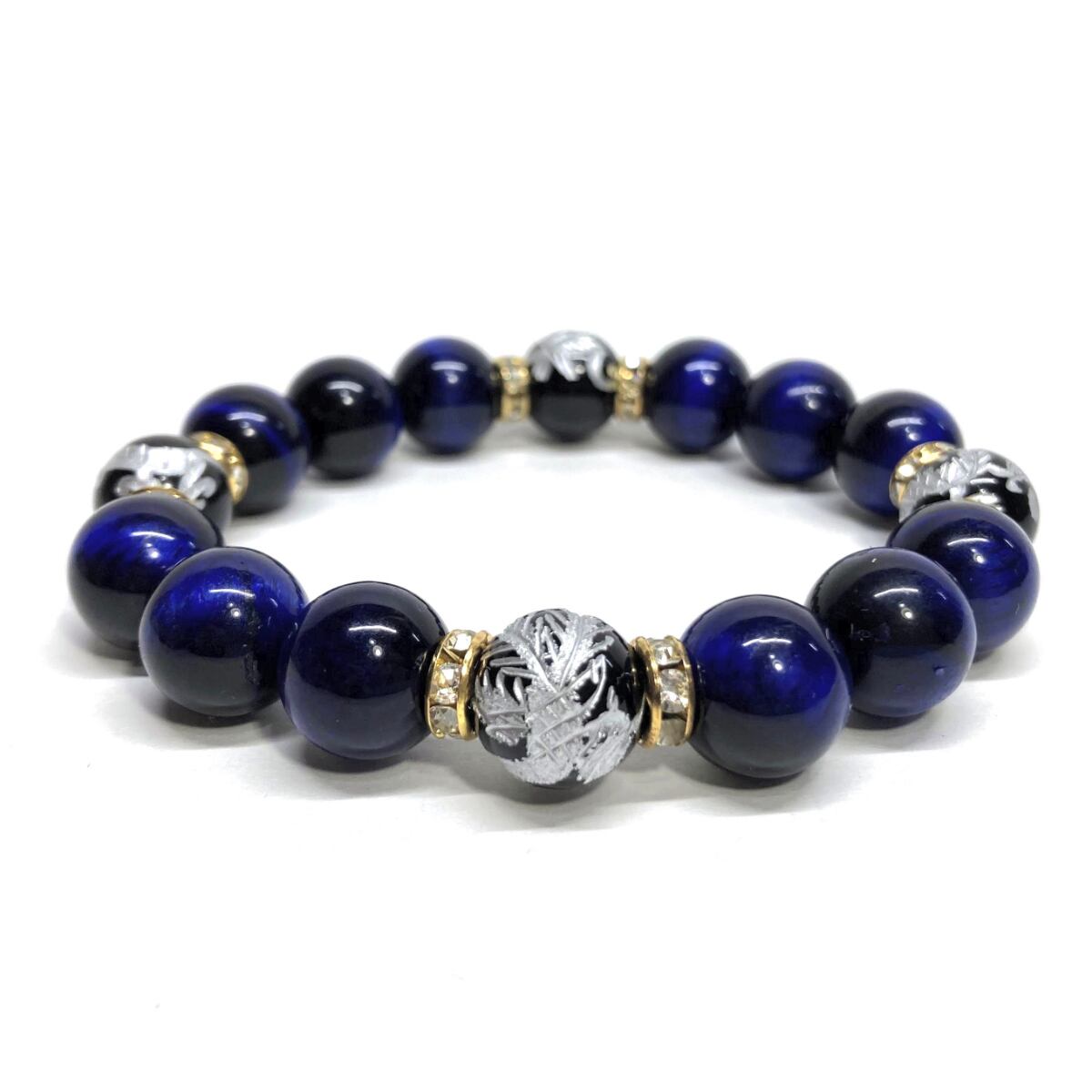ご覧頂いているブレスレットは、四神獣銀彫オニキスとブルータイガーアイを組み合わせたブレスレット。守り神である四神とパワーストーンの組み合わせで運気の流れを引き寄せる強運ブレスレットです。シンプルなデザインで男女問わず、年齢問わずご使用頂けるデザインなっております。シンプルなデザインは日常のアクセントとして、仕事やビジネスカジュアル、パーティーや特別なイベントなど様々なシーン活用できます。また、ちょっと贈り物にも最適なブレスレットになっております。四神獣を身につけて厄災から身を守り、多くの運気を呼び込まれてください。