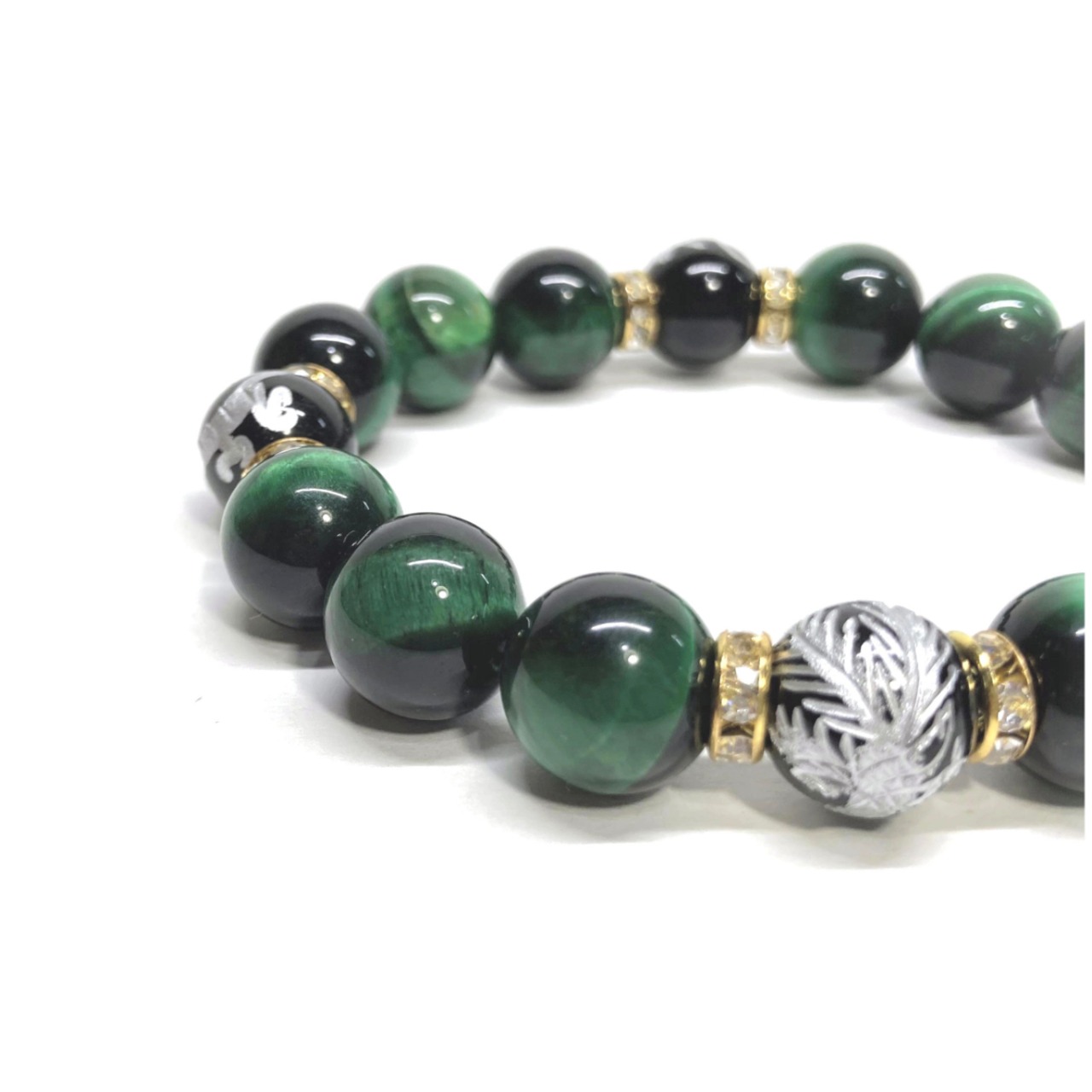 12mm 四神獣銀彫オニキス×グリーンタイガーアイ パワーストーン ブレスレット天然石 運気上昇 金運 健康運 お守り 青龍 白虎 玄武 朱雀 (ゴールド)メンズ・レディース 男性・女性 数珠ブレス 開運 ☆ | パワーストーン 天然石 Kinari&Co.