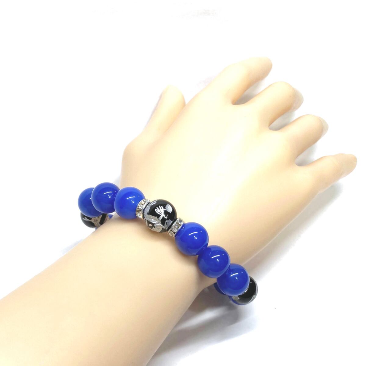 12mm 四神獣銀彫オニキス×青瑪瑙 パワーストーン ブレスレット天然石 運気上昇 開運 ☆ 金運 健康運 お守り 青龍 白虎 玄武 朱雀 (シルバー)メンズ・レディース 男性・女性 数珠ブレス 開運 ☆ | パワーストーン 天然石 Kinari&Co.