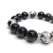 12mm 四神獣銀彫オニキス×オニキス パワーストーン ブレスレット天然石 運気上昇 開運 ☆ 金運 健康運 厄払い お守り 青龍 白虎 玄武 朱雀 (シルバー)メンズ・レディース 男性・女性 数珠ブレス 開運 ☆ | パワーストーン 天然石 Kinari&Co.