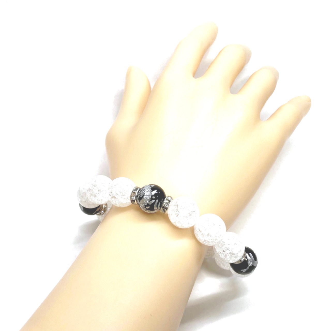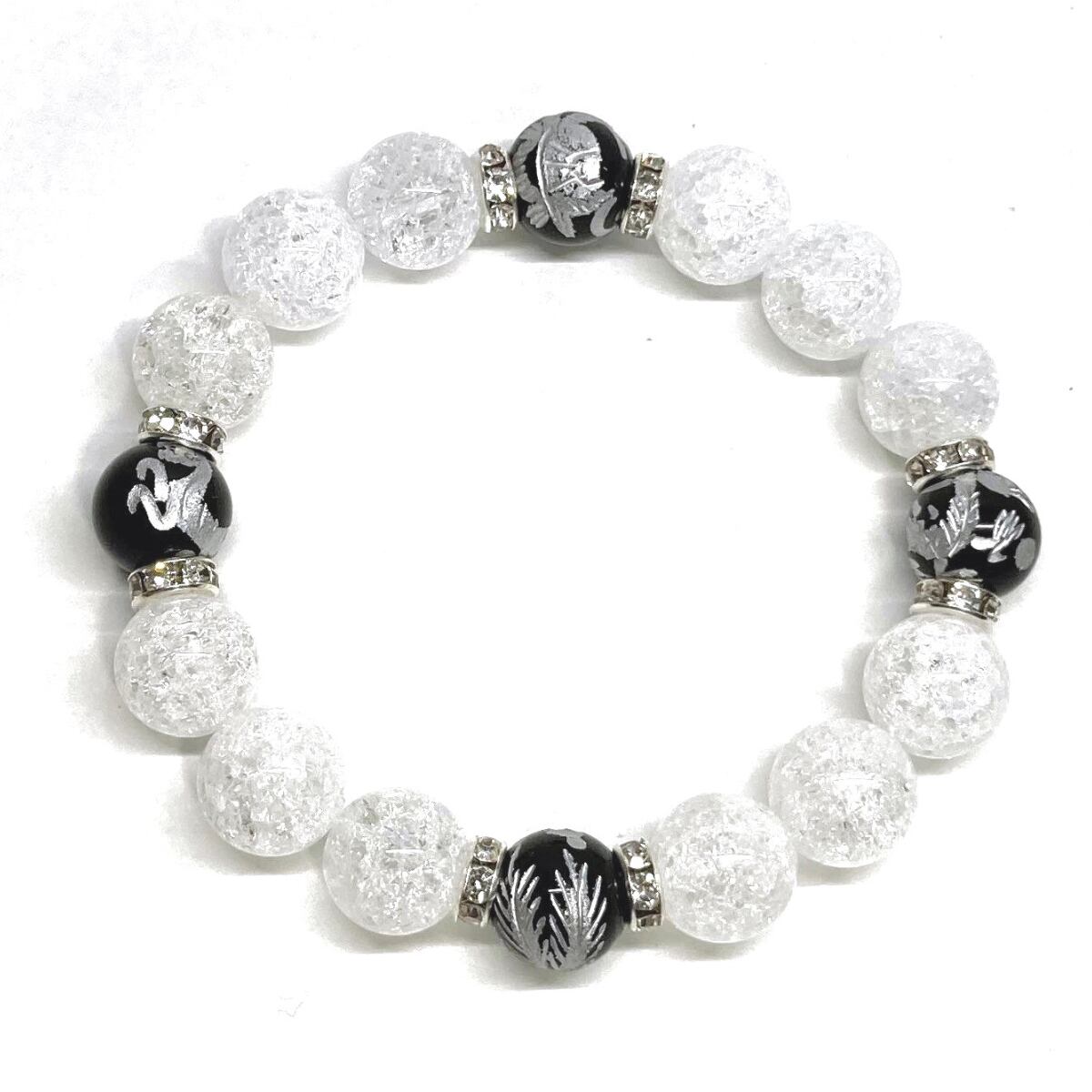 12mm 四神獣銀彫オニキス×クラック水晶 パワーストーン ブレスレット天然石 運気上昇 開運 ☆ 健康運 厄払い お守り 青龍 白虎 玄武 朱雀 (シルバー)メンズ・レディース 男性・女性 数珠ブレス 開運 ☆ | パワーストーン 天然石 Kinari&Co.