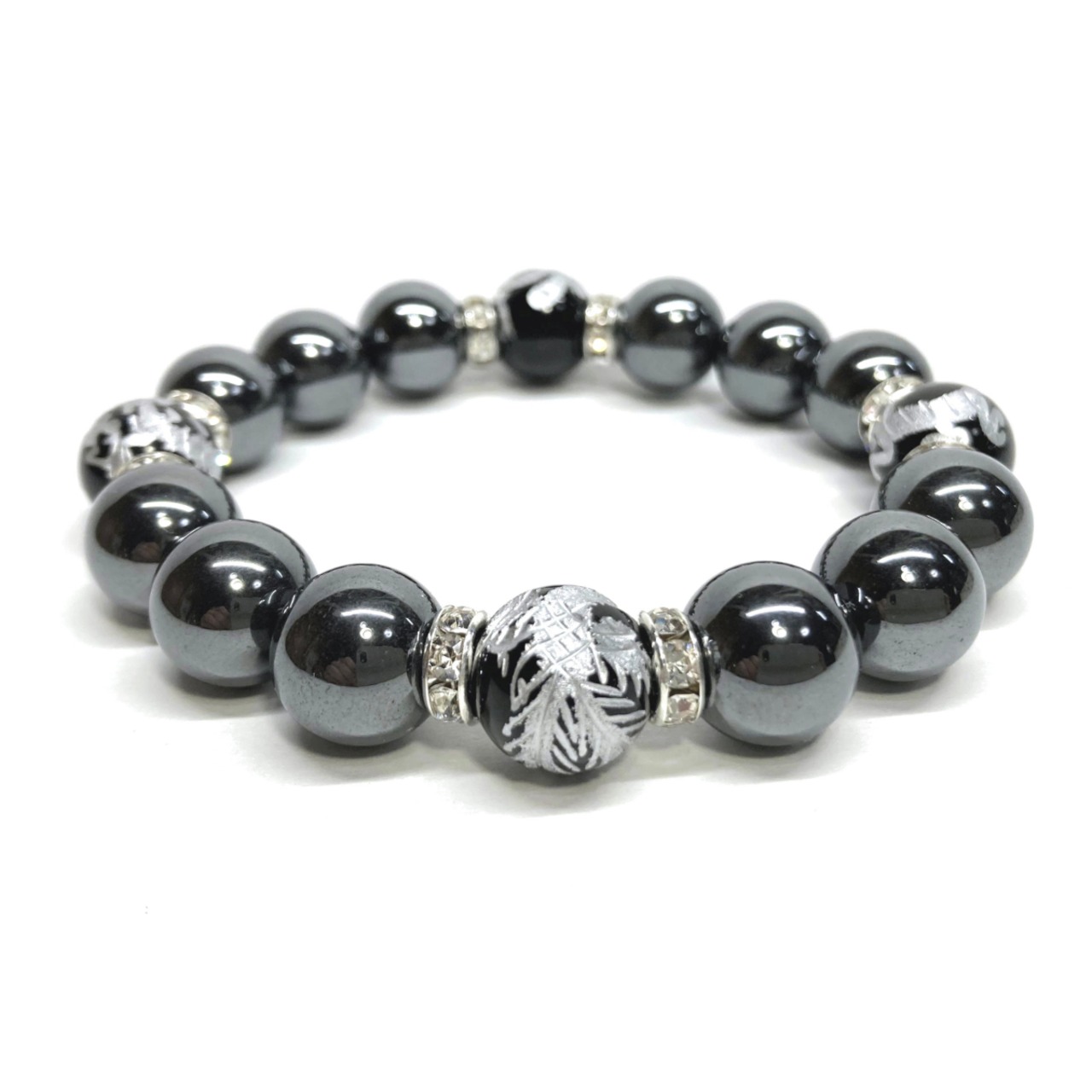 12mm 四神獣銀彫オニキス×ヘマタイト パワーストーン ブレスレット天然石 運気上昇 開運 ☆ 健康運 厄払い お守り 青龍 白虎 玄武 朱雀 (シルバー)メンズ・レディース 男性・女性 数珠ブレス 開運 ☆ | パワーストーン 天然石 Kinari&Co.