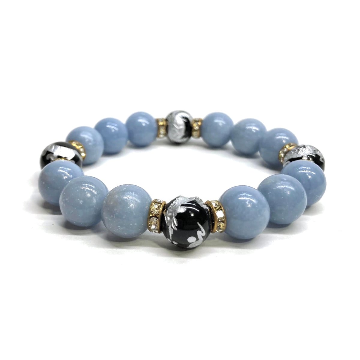 ご覧頂いているブレスレットは、四神獣銀彫オニキスとエンジェライトを組み合わせたブレスレット。守り神である四神とパワーストーンの組み合わせで運気の流れを引き寄せる強運ブレスレットです。シンプルなデザインで男女問わず、年齢問わずご使用頂けるデザインなっております。シンプルなデザインは日常のアクセントとして、仕事やビジネスカジュアル、パーティーや特別なイベントなど様々なシーン活用できます。また、ちょっと贈り物にも最適なブレスレットになっております。四神獣を身につけて厄災から身を守り、多くの運気を呼び込まれてください。