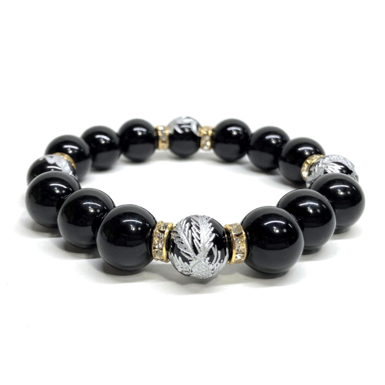 12mm 四神獣銀彫オニキス×モリオン パワーストーン ブレスレット天然石 運気上昇 開運 ☆ 金運 健康運 厄払い お守り 青龍 白虎 玄武 朱雀 (ゴールド)メンズ・レディース 男性・女性 数珠ブレス 開運 ☆ | パワーストーン 天然石 Kinari&Co.