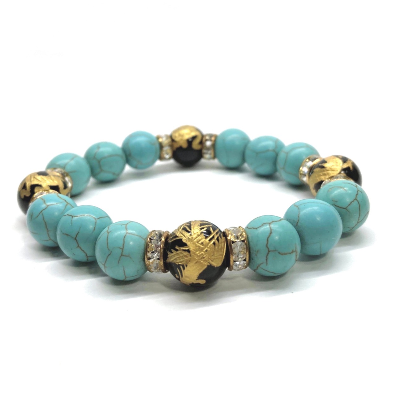 12mm 四神獣金彫オニキス×ターコイズ パワーストーン ブレスレット 運気上昇 開運 金運 健康運 厄除け お守り 青龍 白虎 玄武 朱雀 (ゴールド)メンズ・レディース 男性・女性 数珠ブレス 開運 /2 ☆ | パワーストーン 天然石 Kinari&Co.