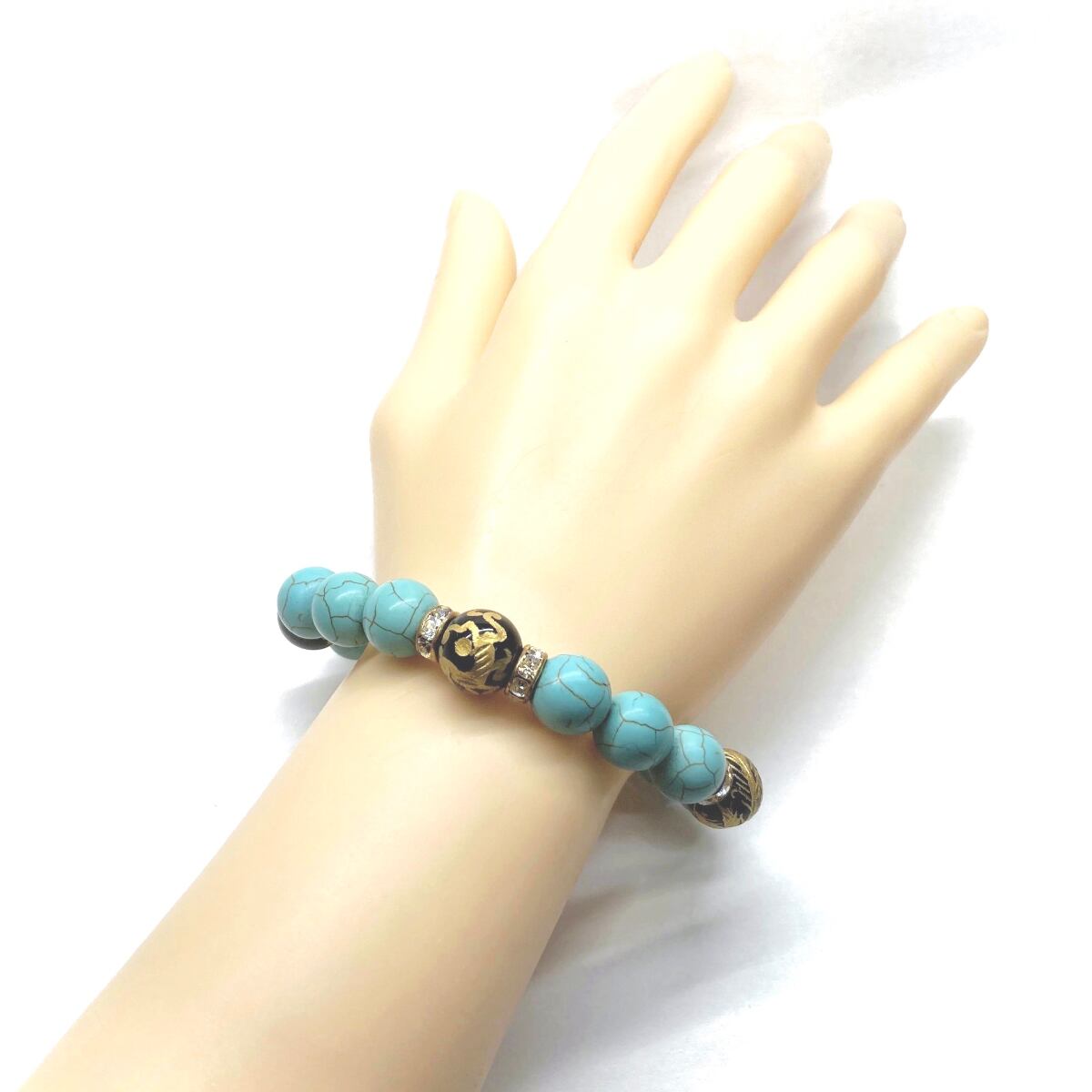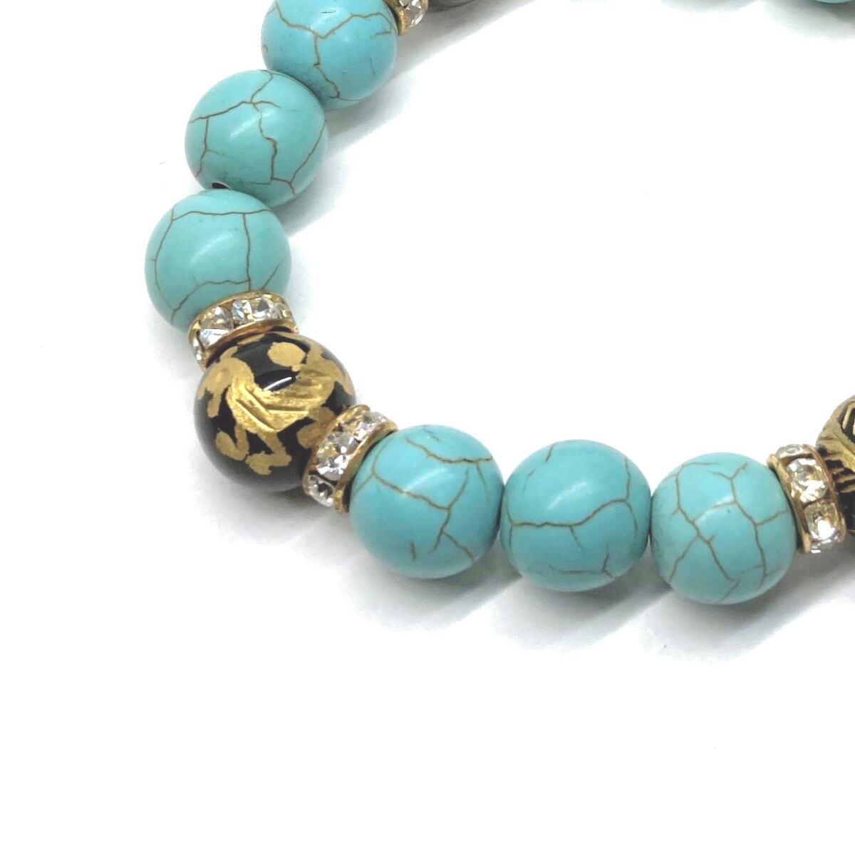 ご覧頂いているブレスレットは、四神獣金彫オニキスとターコイズを組み合わせたブレスレット。守り神である四神とパワーストーンの組み合わせで運気の流れを引き寄せる強運ブレスレットです。シンプルなデザインで男女問わず、年齢問わずご使用頂けるデザインなっております。シンプルなデザインは日常のアクセントとして、仕事やビジネスカジュアル、パーティーや特別なイベントなど様々なシーン活用できます。また、ちょっと贈り物にも最適なブレスレットになっております。四神獣を身につけて厄災から身を守り、多くの運気を呼び込まれてください。