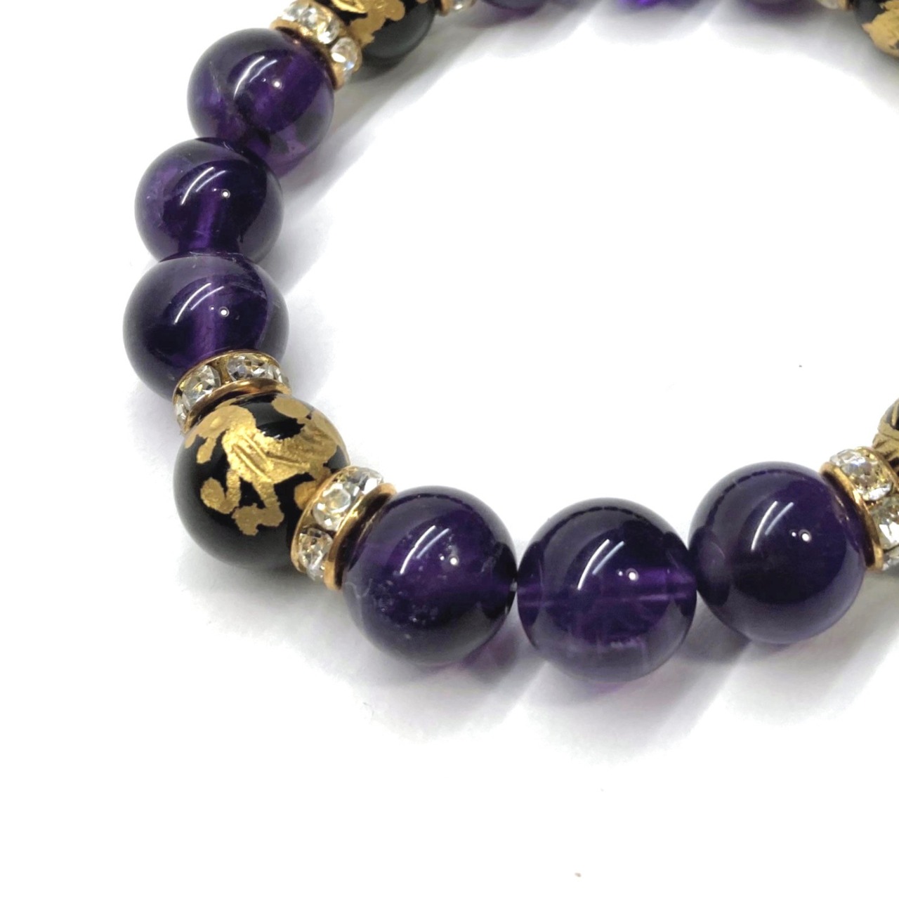 12mm 四神獣金彫オニキス×アメジスト パワーストーン ブレスレット天然石 運気上昇 開運 ☆ 恋愛運 お守り 青龍 白虎 玄武 朱雀 2月誕生石(ゴールド)メンズ・レディース 男性・女性 数珠ブレス 開運 ☆ | パワーストーン 天然石 Kinari&Co.