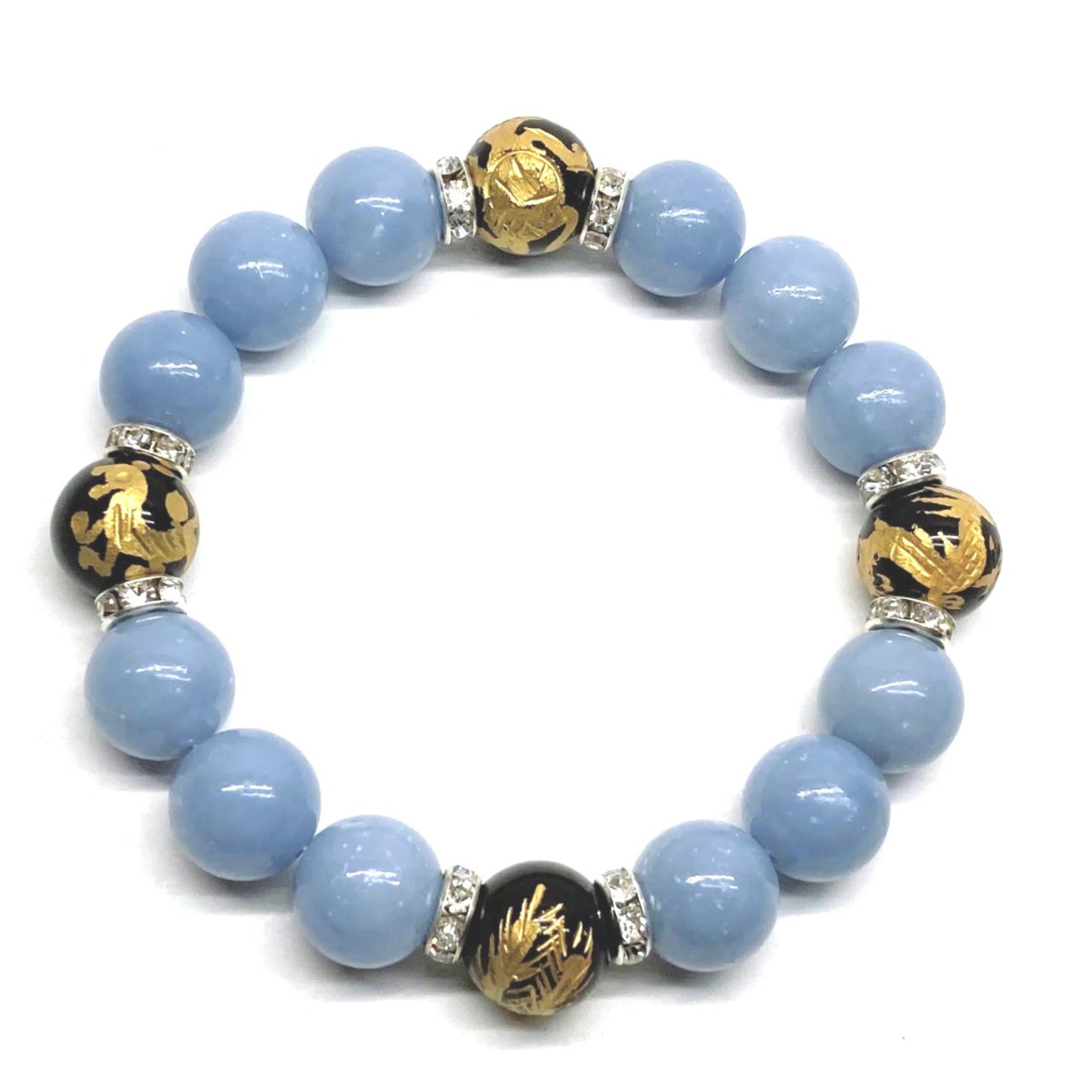 ご覧頂いているブレスレットは、四神獣金彫オニキスとエンジェライトを組み合わせたブレスレット。守り神である四神とパワーストーンの組み合わせで運気の流れを引き寄せる強運ブレスレットです。シンプルなデザインで男女問わず、年齢問わずご使用頂けるデザインなっております。シンプルなデザインは日常のアクセントとして、仕事やビジネスカジュアル、パーティーや特別なイベントなど様々なシーン活用できます。また、ちょっと贈り物にも最適なブレスレットになっております。四神獣を身につけて厄災から身を守り、多くの運気を呼び込まれてください。