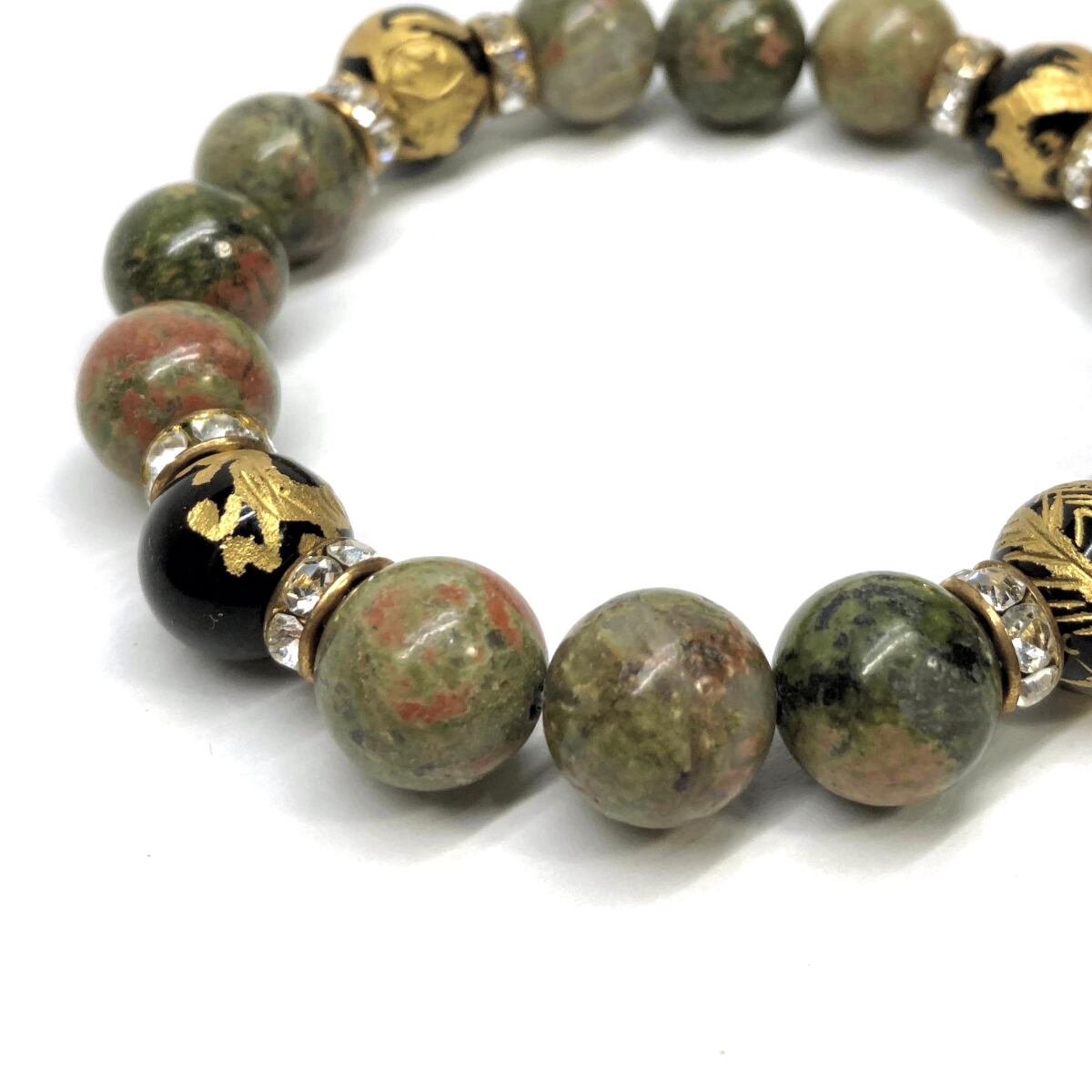 12mm 四神獣金彫オニキス×ユナカイト パワーストーン ブレスレット天然石 運気上昇 開運 ☆ 健康運 お守り 青龍 白虎 玄武 朱雀 (ゴールド)メンズ・レディース 男性・女性 数珠ブレス 開運 ☆ | パワーストーン 天然石 Kinari&Co.