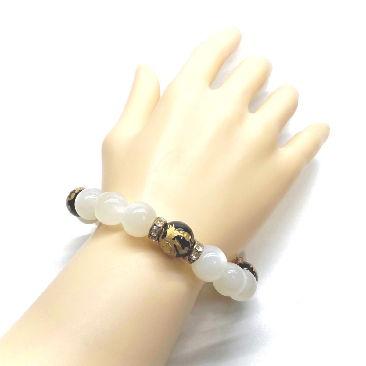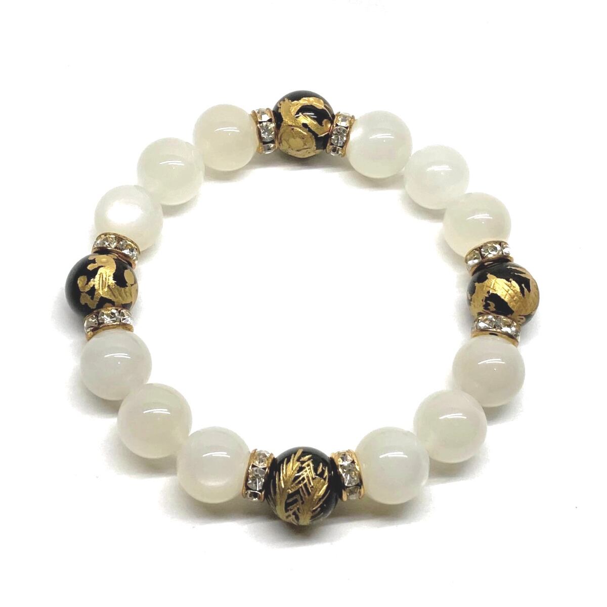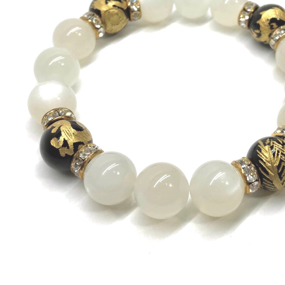 12mm 四神獣金彫オニキス×ムーンストーン パワーストーン ブレスレット天然石 運気上昇 開運 ☆ お守り 青龍 白虎 玄武 朱雀 6月誕生石 (ゴールド)メンズ・レディース 男性・女性 数珠ブレス 開運 ☆ | パワーストーン 天然石 Kinari&Co.