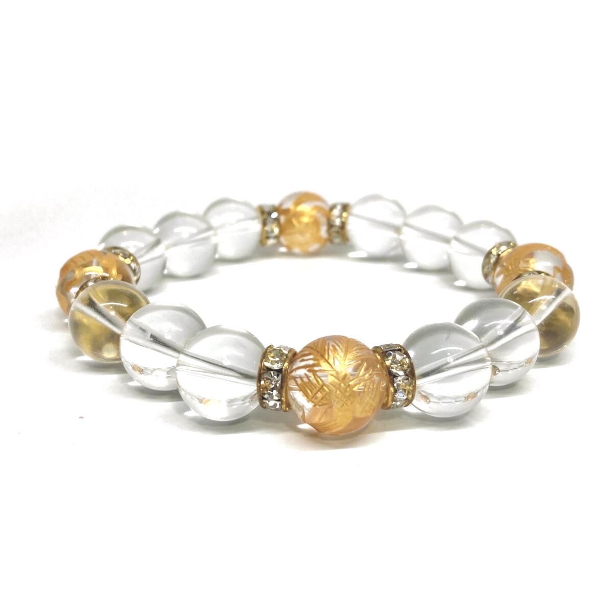 12mm 四神獣金彫水晶×水晶 パワーストーン ブレスレット天然石 運気上昇 開運 ☆ 金運 恋愛運 お守り 青龍 白虎 玄武 朱雀 4月誕生石 (ゴールド)メンズ・レディース 男性・女性 数珠ブレス 開運 ☆ | パワーストーン 天然石 Kinari&Co.