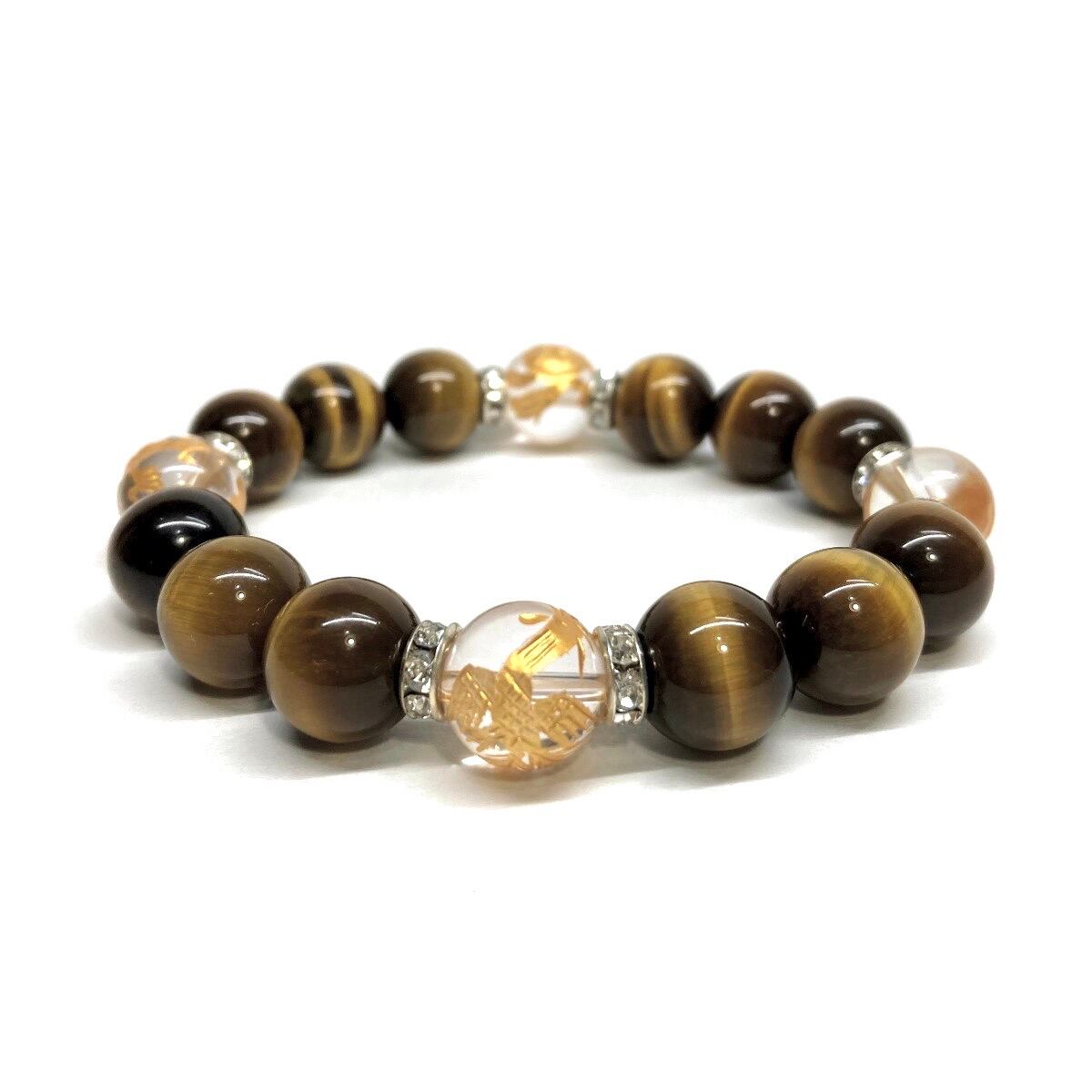 12mm 四神獣金彫水晶×タイガーアイ パワーストーン ブレスレット天然石 運気上昇 金運 ギャンブル運 お守り 青龍 白虎 玄武 朱雀 (シルバー)メンズ・レディース 男性・女性 数珠ブレス 開運 ☆ | パワーストーン 天然石 Kinari&Co.