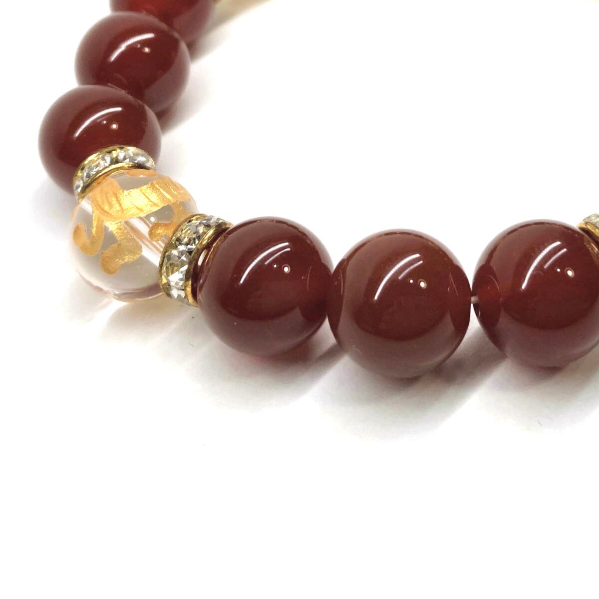 12mm 四神獣金彫水晶×赤瑪瑙 パワーストーン ブレスレット天然石 運気上昇 開運 ☆ 金運 ギャンブル運 お守り 青龍 白虎 玄武 朱雀 (ゴールド)メンズ・レディース 男性・女性 数珠ブレス 開運 ☆ | パワーストーン 天然石 Kinari&Co.