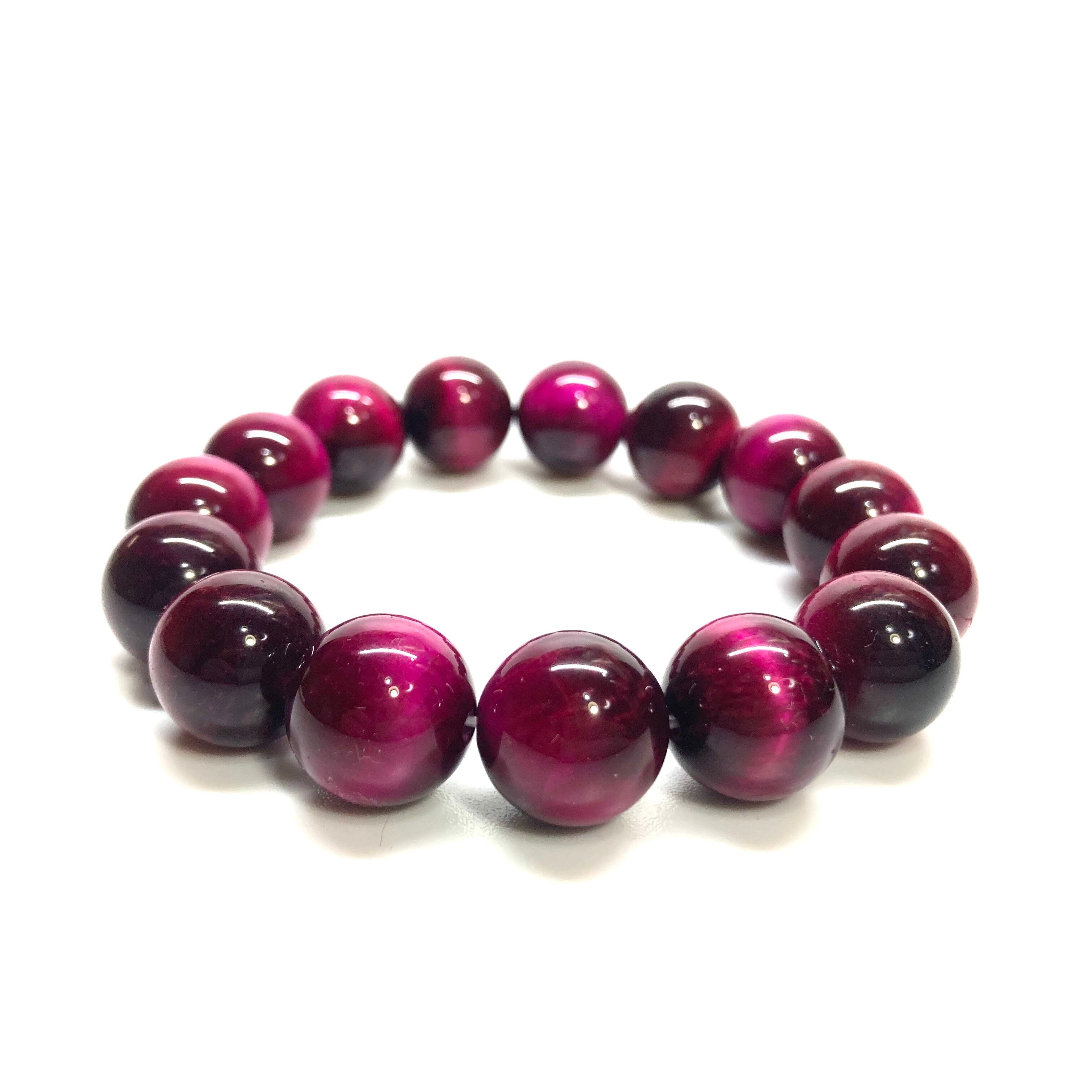 こちらは、14mm玉のピンクタイガーアイを使用したブレスレットです。シンプルなデザインですのでどんなコーディネートとも合わせ易いブレスレットです。石大きさはインパクトを与えてくれる大きさの14mm玉を使用しています。内周約17cmです。数に限りがございますので気になる方はお早めにどうぞ。