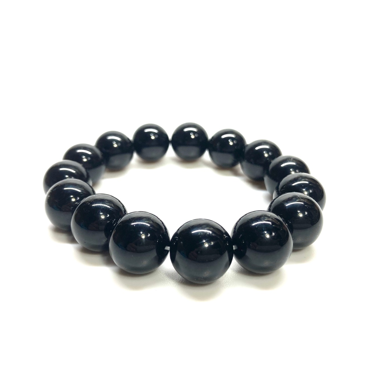 こちらは、14mm玉のオニキスを使用した天然石ブレスレットです。シンプルなデザインですのでどんなコーディネートとも合わせ易いブレスレットです。石大きさはインパクトを与えてくれる大きさの14mm玉を使用しています。内周約17cmです。数に限りがございますので気になる方はお早めにどうぞ。