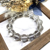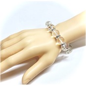 こちらは、14mm玉の水晶を使用した天然石ブレスレットです。シンプルなデザインですのでどんなコーディネートとも合わせ易いブレスレットです。石との間にはロンデルを挟み高級感を演出しています。石大きさはインパクトを与えてくれる大きさの14mm玉を使用しています。内周約17cmです。数に限りがございますので気になる方はお早めにどうぞ。