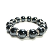 こちらは、14mm玉のヘマタイトを使用した天然石ブレスレットです。シンプルなデザインですのでどんなコーディネートとも合わせ易いブレスレットです。石との間にはロンデルを挟み高級感を演出しています。石大きさはインパクトを与えてくれる大きさの14mm玉を使用しています。内周約17cmです。数に限りがございますので気になる方はお早めにどうぞ。