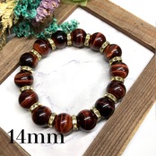 レッドタイガーアイ パワーストーン ブレスレット 天然石ブレス (ゴールド) 14mm メンズ・レディース 男性・女性 数珠ブレス 開運 ☆